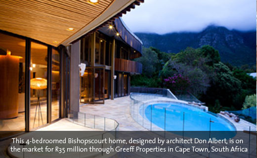 This architecturally significant four-bedroom Bishopscourt home, designed by architect Don Albert, is on the market for R35 million through Greeff Properties, exclusive Affiliate of Christie’s International Real Estate in Cape Town, South Africa.